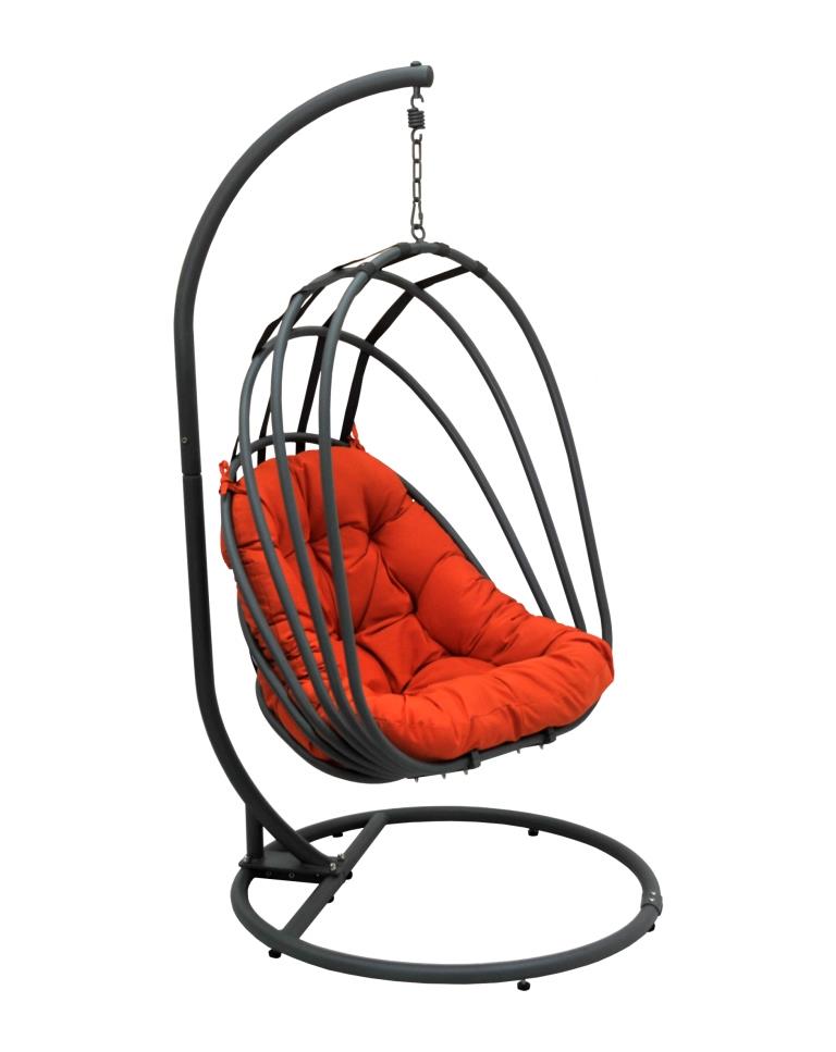 Удобное и стильное дизайнерское подвесное кресло станет украшением интерьеров городских квартир, загородных домов, террас, веранд или балконов. Отдых в этом оригинальном и практичном кресле станет комфортным и приятным. Кресло состоит из трех отдельных частей: основание, опора и уютная чаша. Металлическое основание покрыто порошковой краской, что способствует более длительному сроку эксплуатации модели в различных погодных условиях. Стильный и необычный дизайн в стиле хай-тек. Конструкция кресла сборно-разборная. Очень комфортная и удобная чаша с яркой оранжевой подушкой из водонепроницаемой ткани. Выдерживаемая нагрузка, кг: 120.