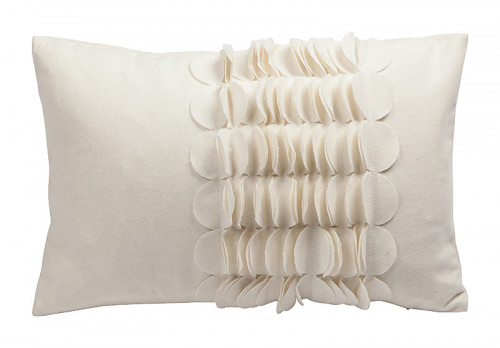Кашемировая, белого цвета продолговатая подушка с объёмным накладным узором и мягким упругим наполнителем, подойдет для подарка и в качестве дополнения к яркому декору интерьера.